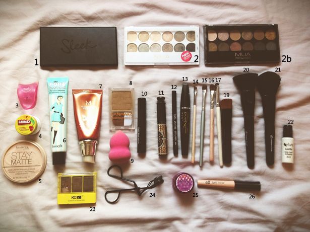 *All of this doesn't ACTUALLY fit in my make up bag (there's so much that it overflows), my brushes and utensils go in a Costa Coffee cooler cup :D